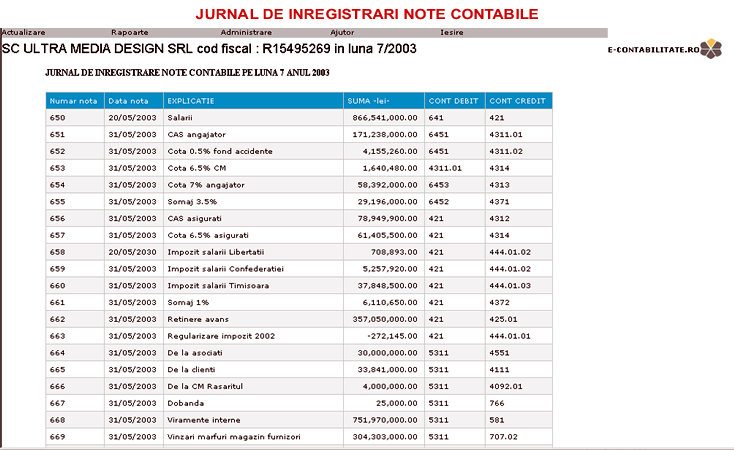Cateva ecrane din aplicatia de contabilitate on-line!